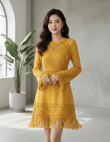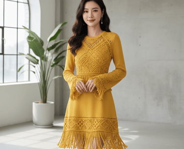 Chaque nœud de macramé et chaque maille de tricot sont réalisés avec précision dans notre atelier. Une robe de cette collection représente entre 40 et 80 heures de travail manuel ininterrompu. Ce délai nous permet de vous garantir une pièce d'une solidité et d'une finition irréprochables.